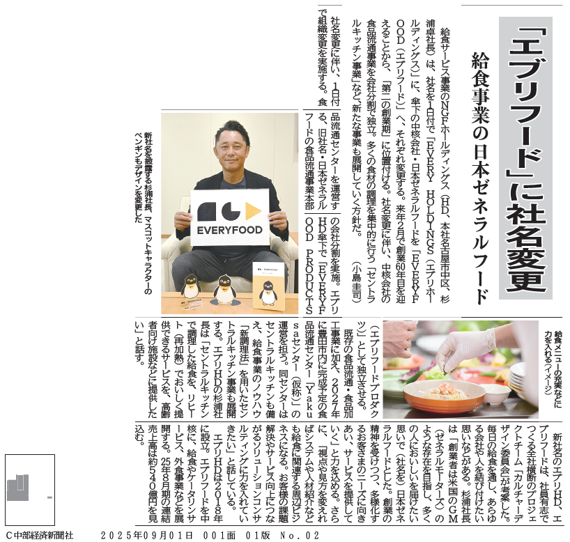 250901_「エブリフード」に社名変更_中部経済新聞_1ページ