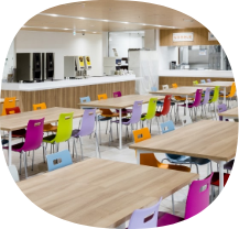 日々のお食事だからこそ、安全でおいしく、健康的で、楽しさや喜びを。提供する料理がその日の活力に繋がるよう、飽きのこないメニューを取り揃え、皆さまに最適な食堂を提案します。