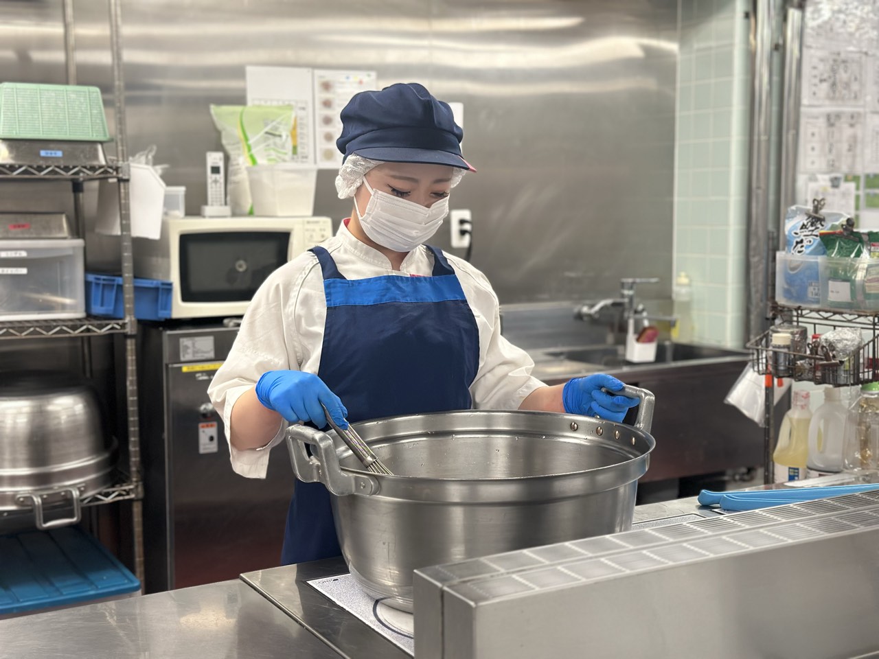 実は小学校時代、給食を作ってくださる方々にとてもお世話になった経験があるんです。いつも温かく接してくださって、食事の時間がとても楽しみでした。その時の温かい思い出が心に残っていて、その影響で給食や社員食堂を経験できる委託給食会社に興味を持つようになりました。