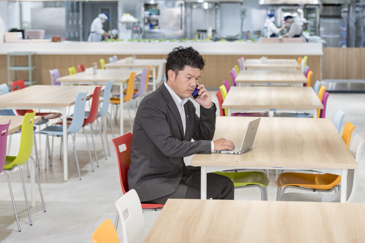 エリアマネージャーとして愛知県三河エリアを担当しています。仕事内容はお客様の要望を聞き、収支のバランスを考えながら要望に応えていくような業務です。具体的には、事業所運営のマネジメント、お客様とのコミュニケーションや交渉、配属従業員の採用、ときには調理師として事業所応援に入るなど、様々な業務を担当しています。