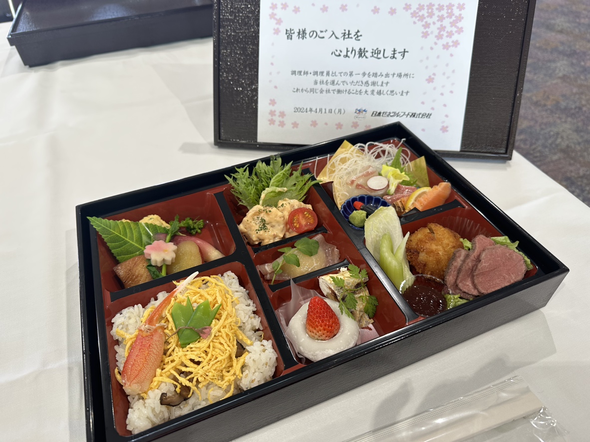 昼食は、当社のグループ会社である日本ケータリング株式会社が手掛ける、「お祝い弁当」。