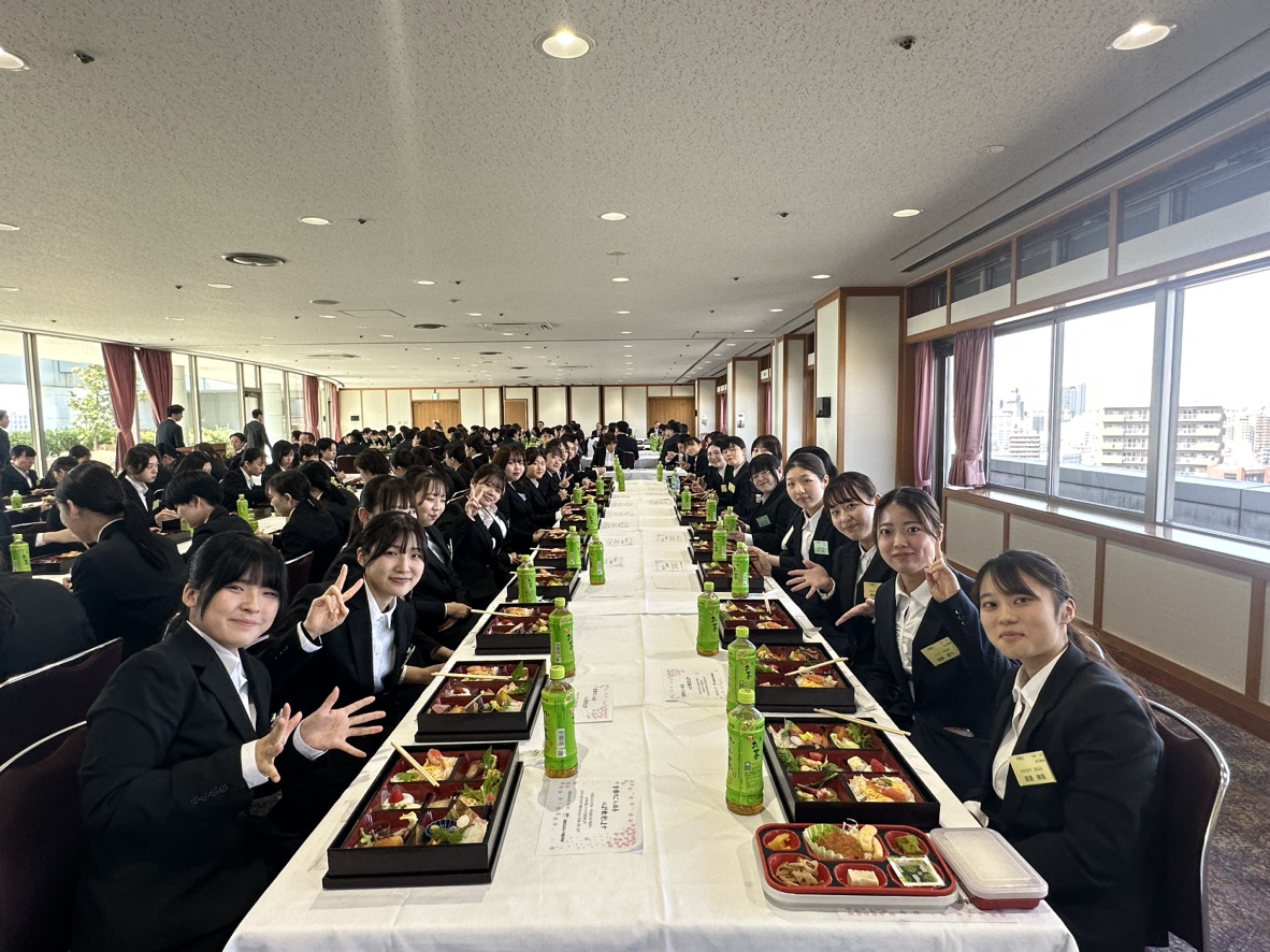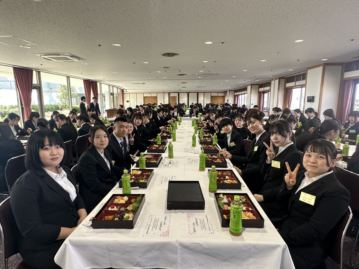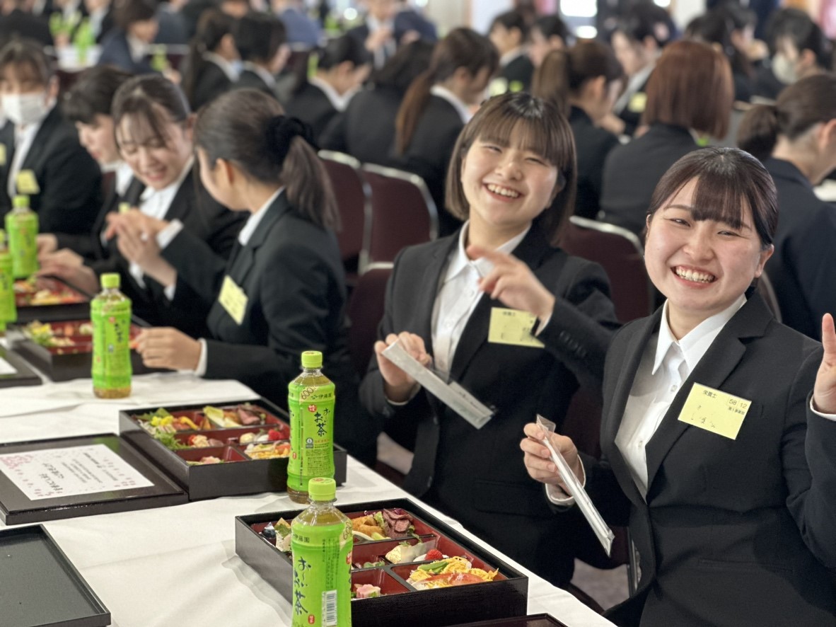 入社式では緊張していた新入社員も、おいしい料理を前にリラックスした様子で、なごやかな雰囲気が会場を包みました。