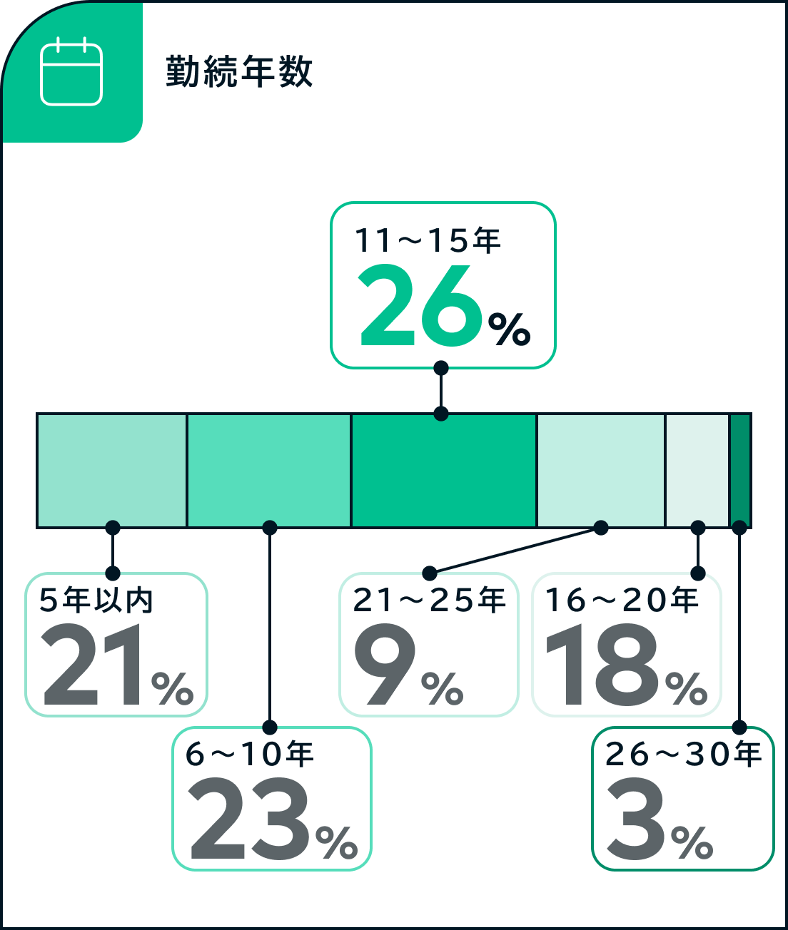 - 正社員、契約社員、シニア社員は10年ごと、パートナー、シニアパートナーは5年ごとに報奨金を支給しています。